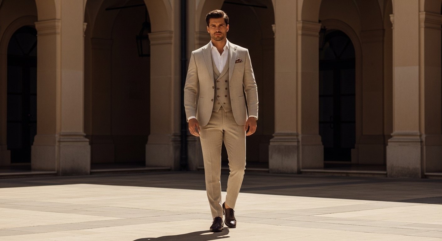 Daha açık ve mevsim uyumlu bir alternatif arayanlar için 3'lü Takım Elbise - Bej dikkat çekici bir seçenektir. Bu tarz bir 3'lü takım elbise, açık ton gömlekler ve sade ayakkabı tercihleriyle birlikte oldukça temiz bir görünüm oluşturabilir. Özellikle gündüz nikahları, yaz davetleri ve daha hafif atmosferli organizasyonlarda 3'lü takım elbise tercihinin neden bu kadar etkili olduğu burada daha net hissedilir.