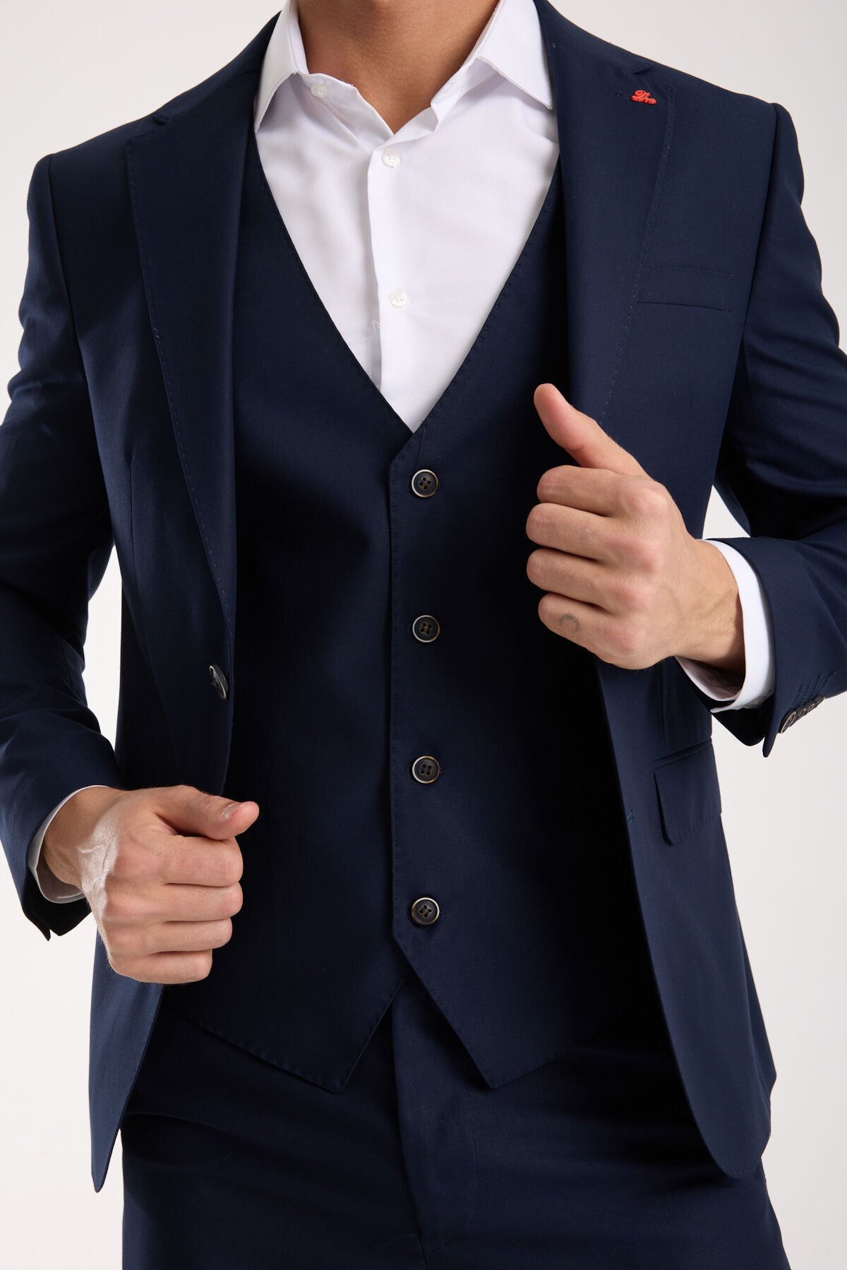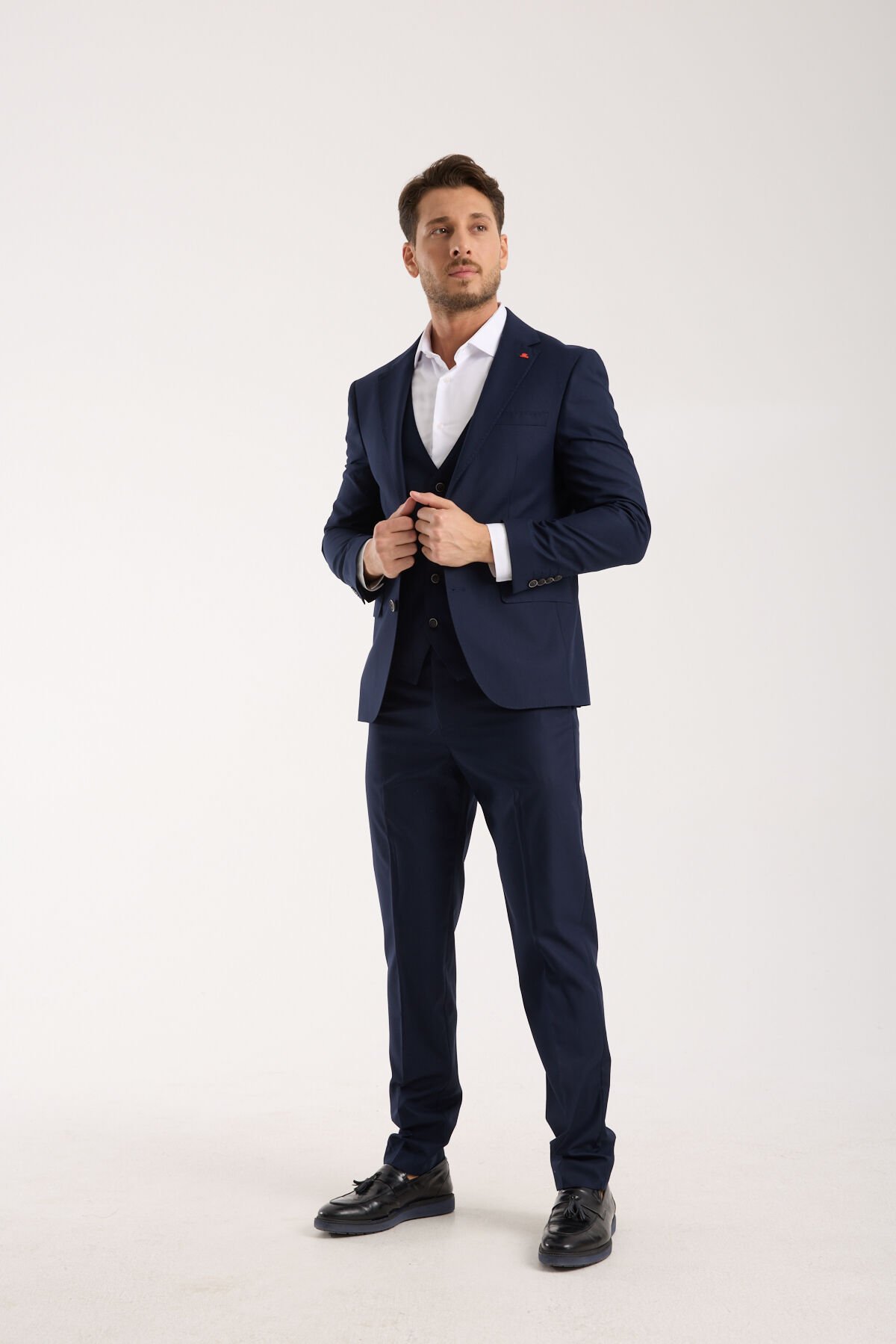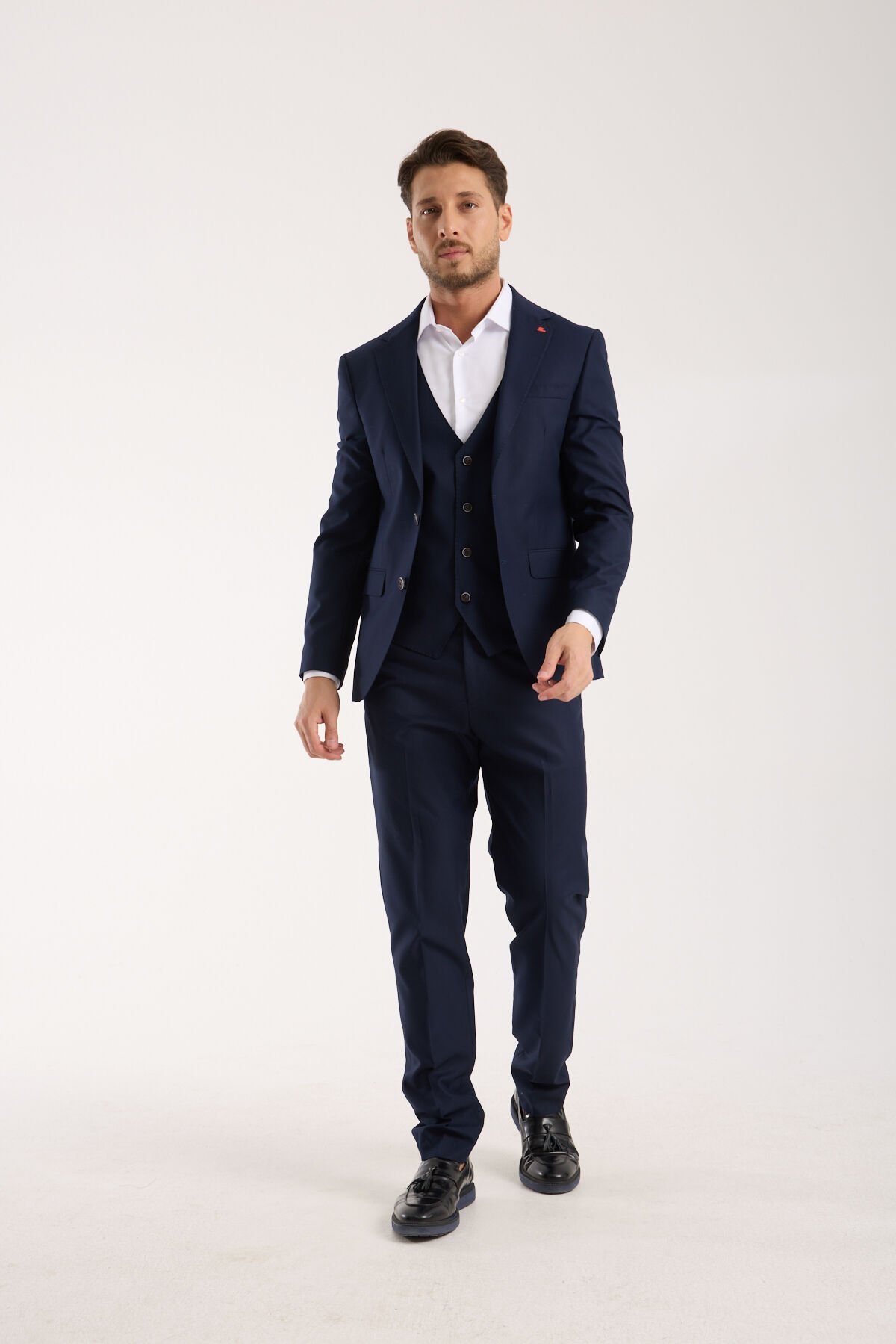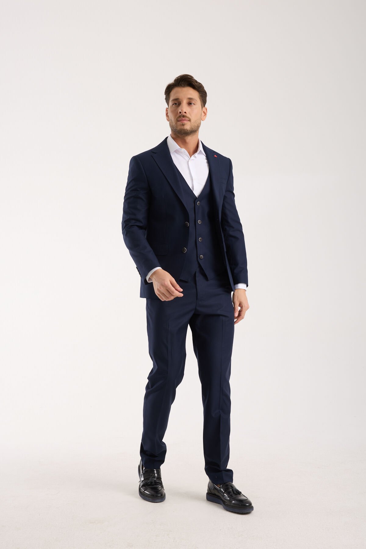 3’lü Takım Elbise - Lacivert 3’lü Takım Elbise - Lacivert, yelekli yapısı ve zamansız tonu ile iş toplantıları, davetler ve özel günlerde güçlü şıklık sunar. Code-27-Lacivert