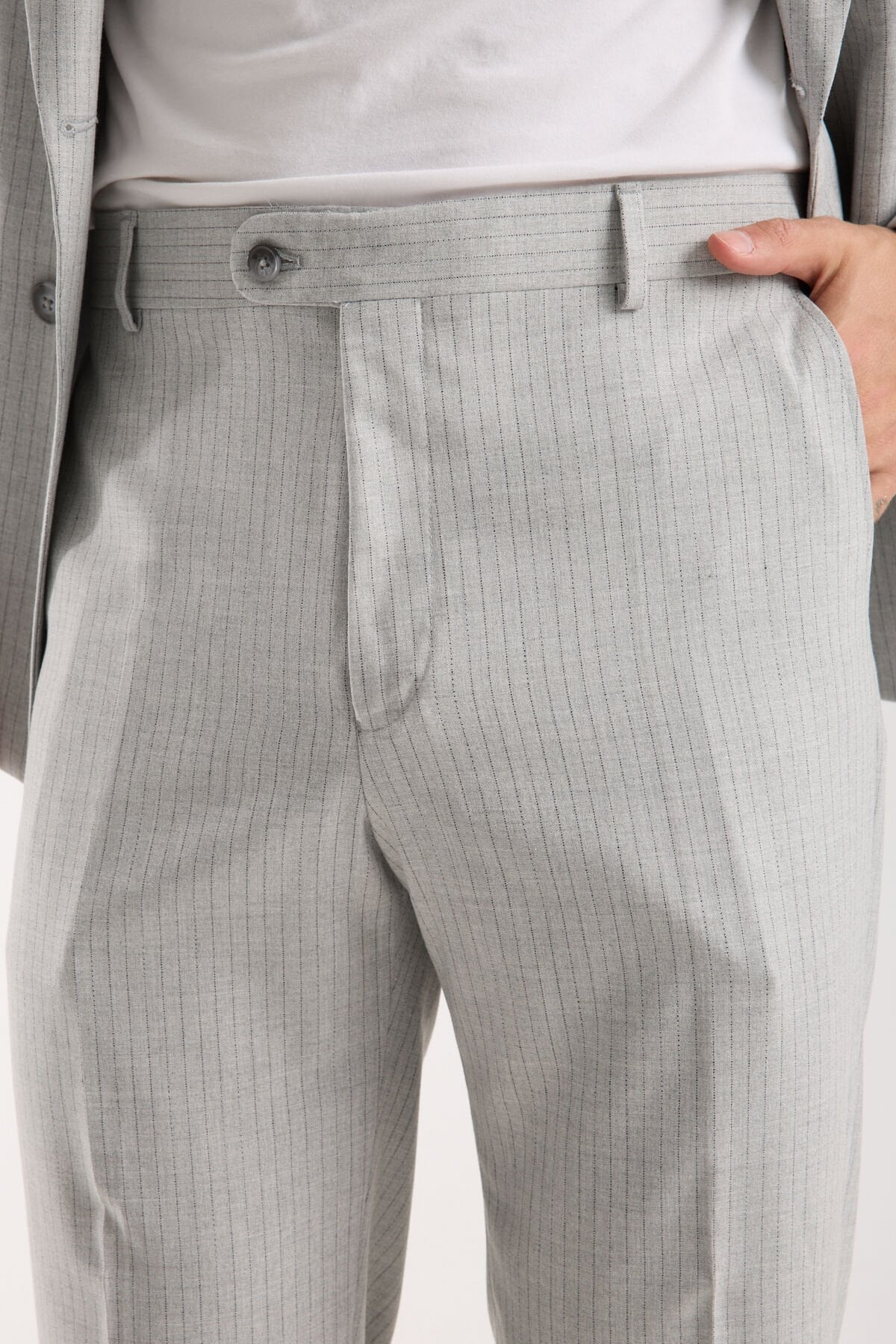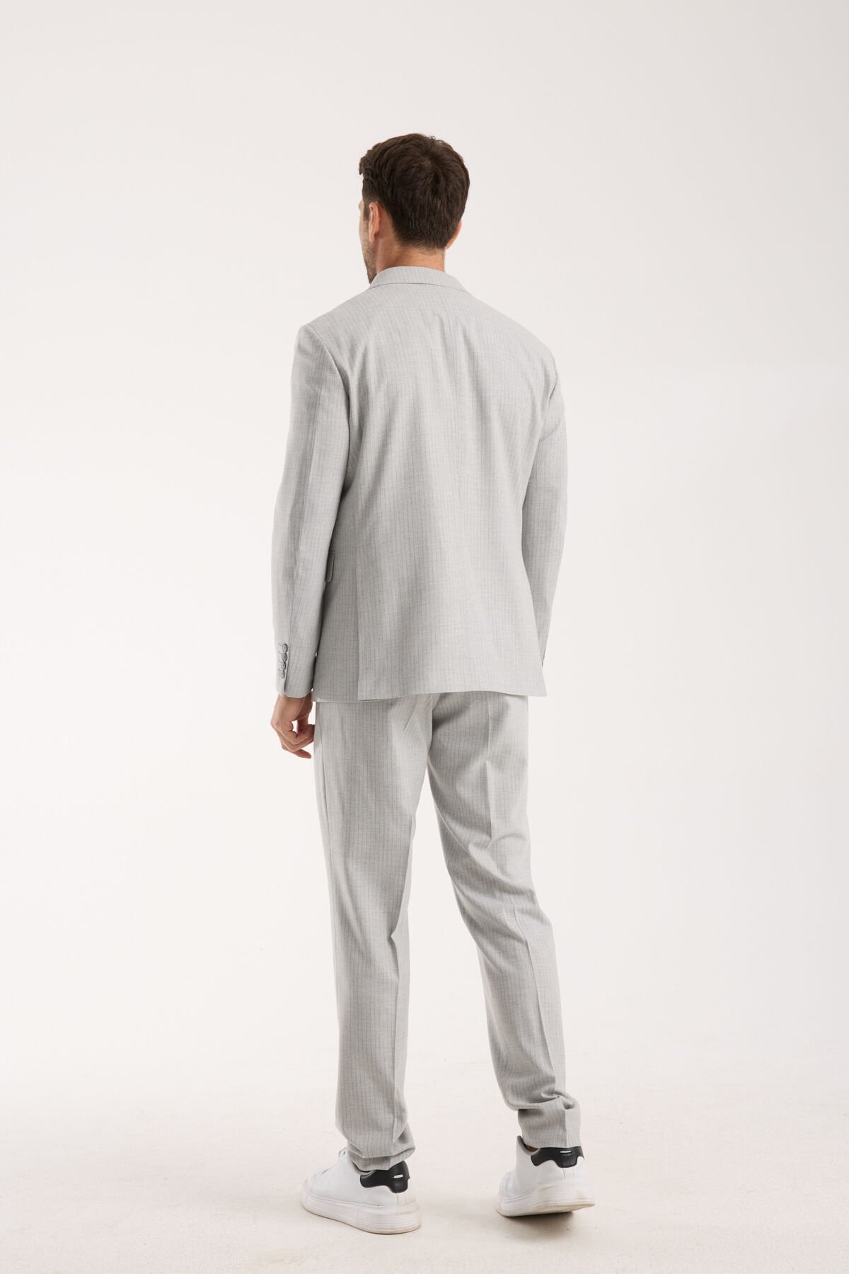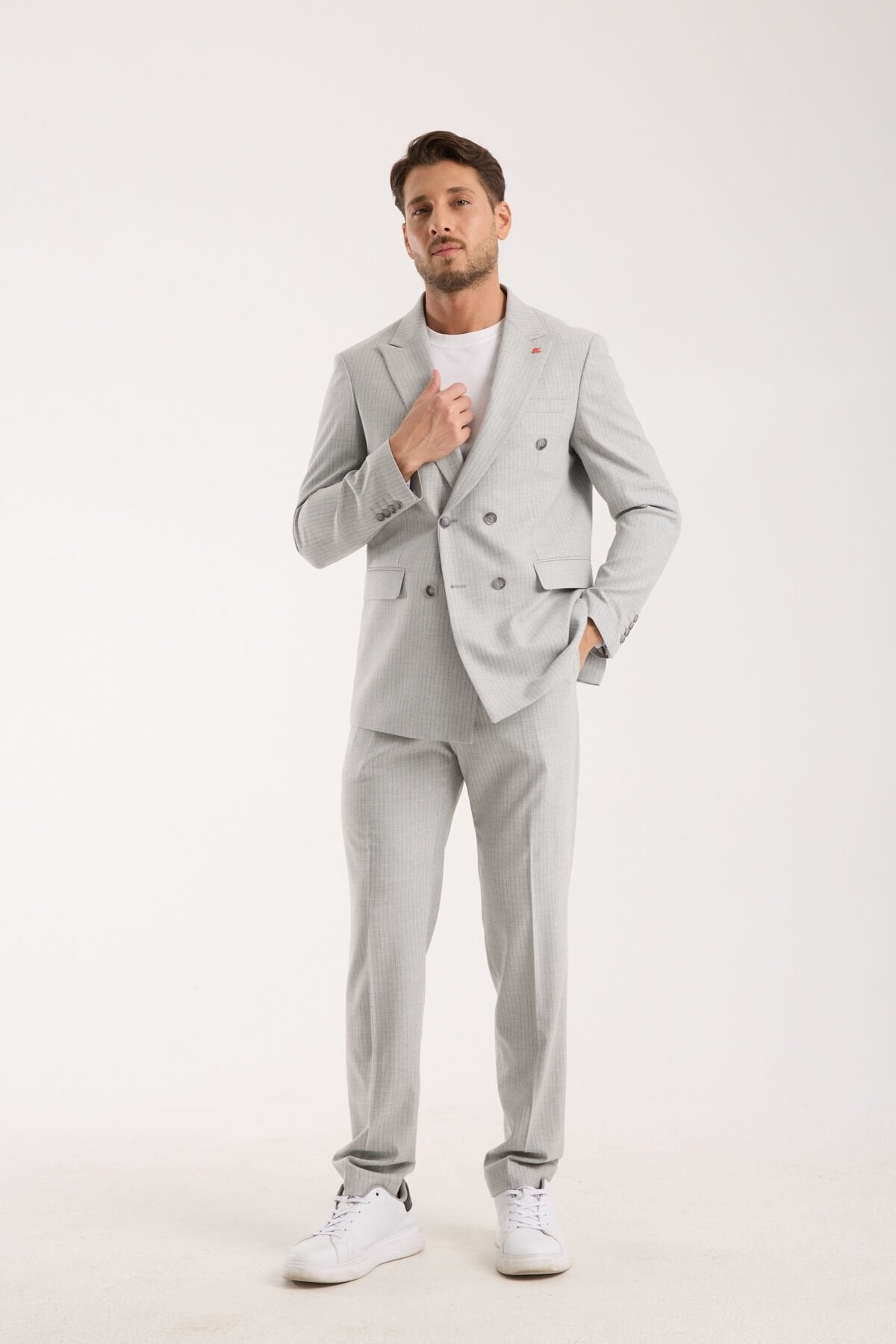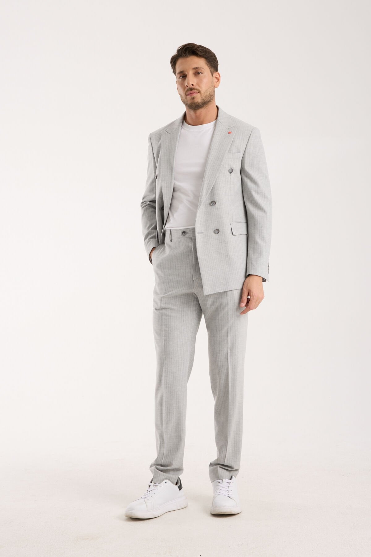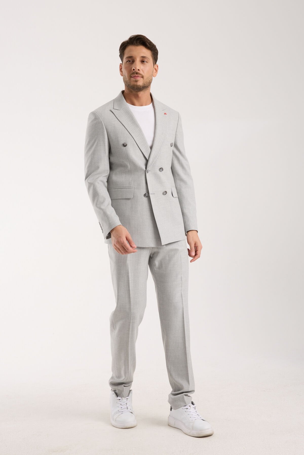 Kruvaze - Açık Gri, açık tonların ferah ve dengeli etkisini kruvaze formun güçlü yapısıyla birleştiren, modern şehir stiline net biçimde uyum sağlayan bir erkek takım elbisesidir. Açık gri renk, sertlikten uzak ama karakterli bir görünüm sunar; klasik koyu tonlara alternatif arayanlar için daha aydınlık, daha çağdaş ve daha rafine bir stil üretir. Bu nedenle Kruvaze - Açık Gri, hem gün içi profesyonel kullanımda hem de daha özenli davet stillerinde dengeli ama güçlü bir görünüm oluşturur. İlk bakışta temiz ve net bir siluet sunan Kruvaze - Açık Gri, yakından bakıldığında kumaş yapısıyla daha seçkin bir stil etkisi yaratır.