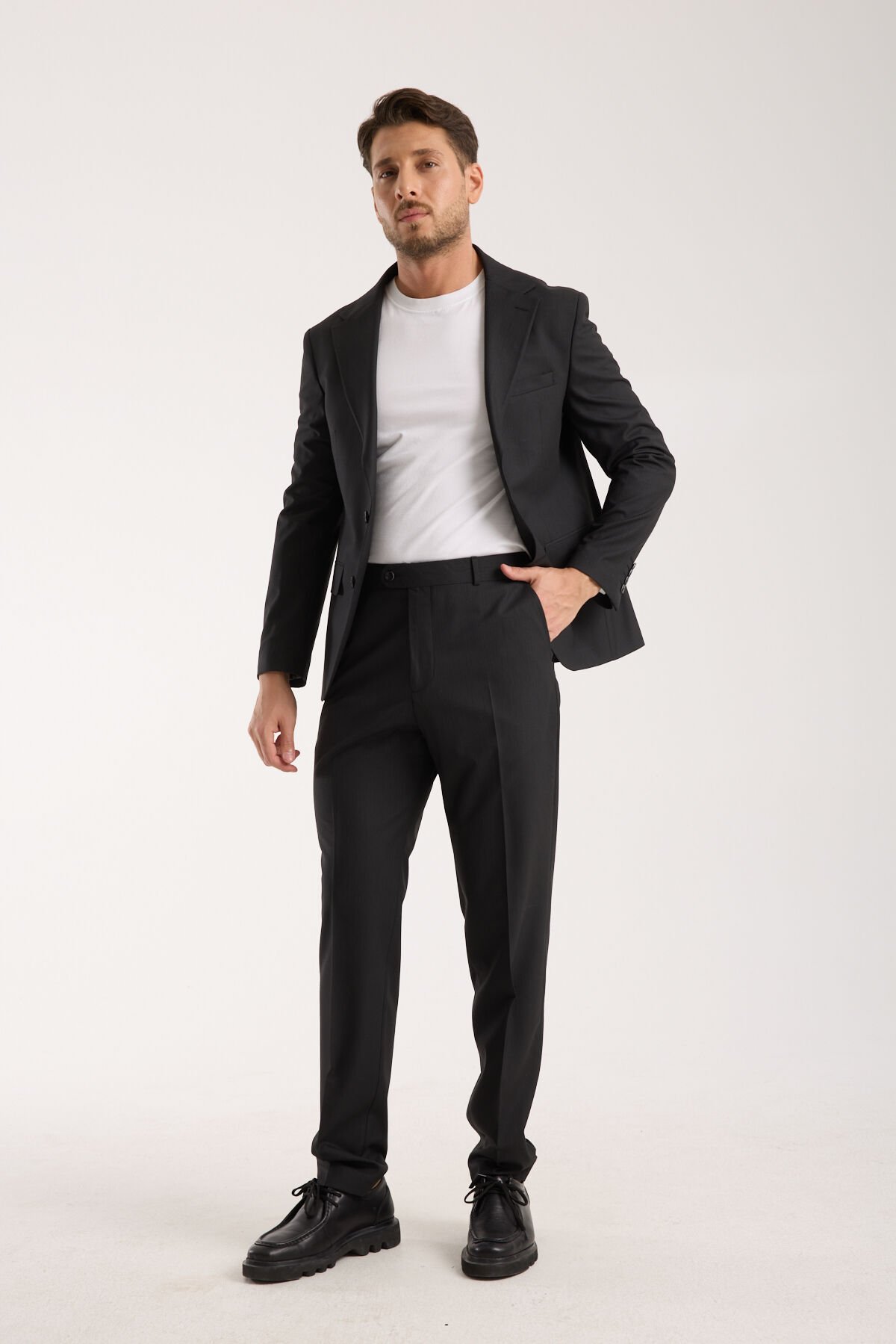 Sofya Takım - Siyah; ofis günlerinde klasik gömlek ve kravatla daha resmi bir çizgi yakalarken, minimal gömlekler veya düz trikolarla kullanıldığında da modern şehir stiline rahatlıkla uyum sağlar. Siyah rengin zamansız karakteri sayesinde farklı ayakkabı ve aksesuar seçimleriyle kolayca kombinlenebilir. Bu nedenle Sofya Takım - Siyah, hem iş yaşamında hem de şehir şıklığında az parçayla güçlü görünüm hedefleyen kullanıcılar için son derece işlevsel bir seçenektir.