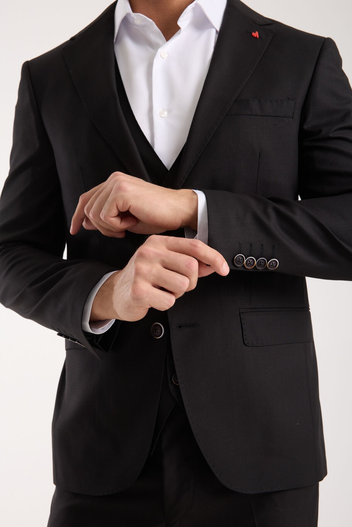 Slim Fit kalıp, vücuda daha yakın bir oturuş sağlayarak silueti netleştirir. Omuzdan bele uzanan hat daha keskin görünür; bel ve göğüs hattında toparlayıcı bir etki yaratır. Kalıp: 111 yapısı, takımın daha modern ve daha düzenli algılanmasını destekler. Bu yapı, ürünün hem güçlü hem de dengeli bir duruş sergilemesini sağlar. Yelek detayı ise özellikle ceket çıkarıldığında bile görünümün dağılmamasına yardımcı olur ve takımın şıklığını günün tamamına yayar. Bu nedenle 3’lü Takım Elbise - Siyah, yalnızca şık değil, aynı zamanda işlevsel bir tercih olarak da öne çıkar.