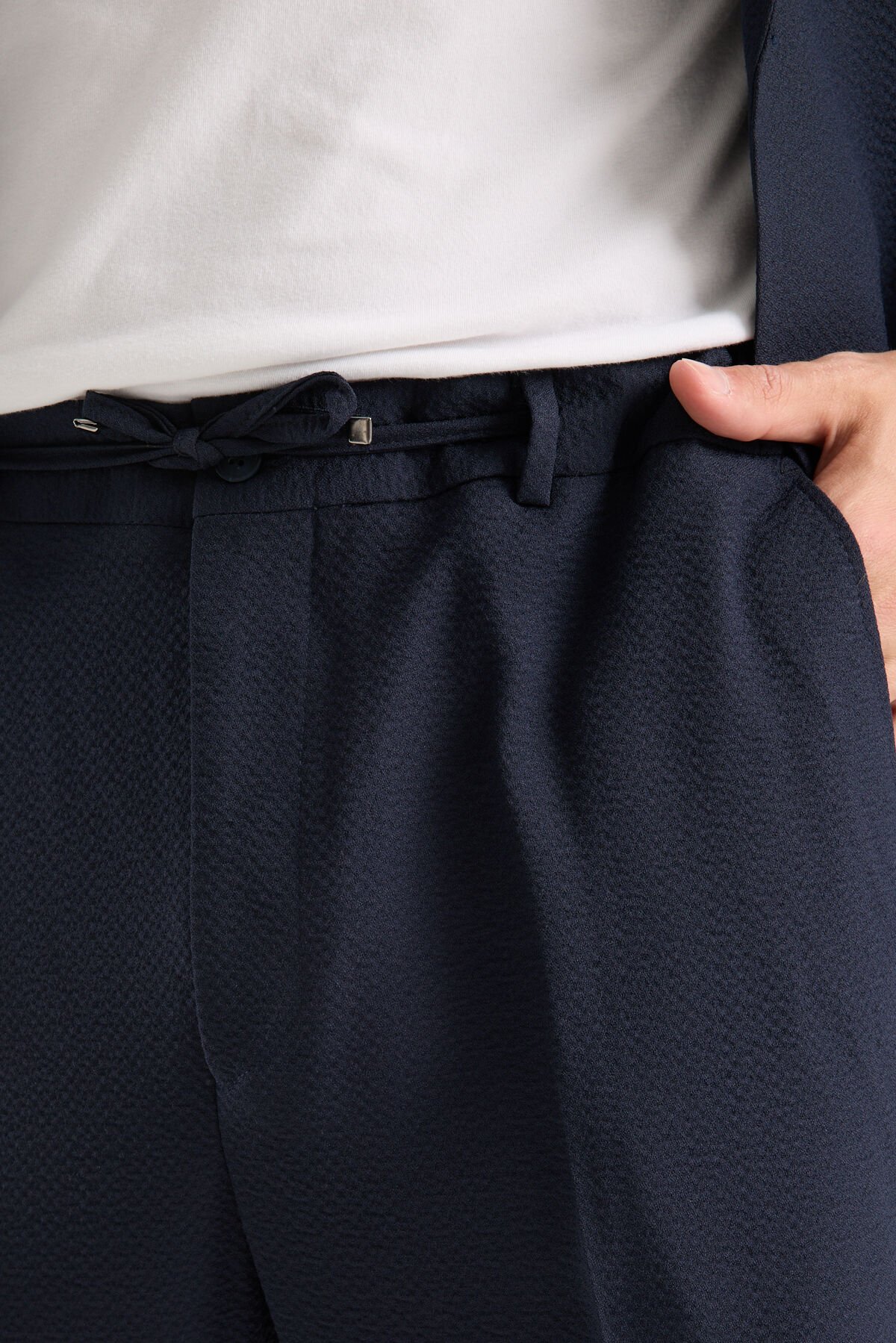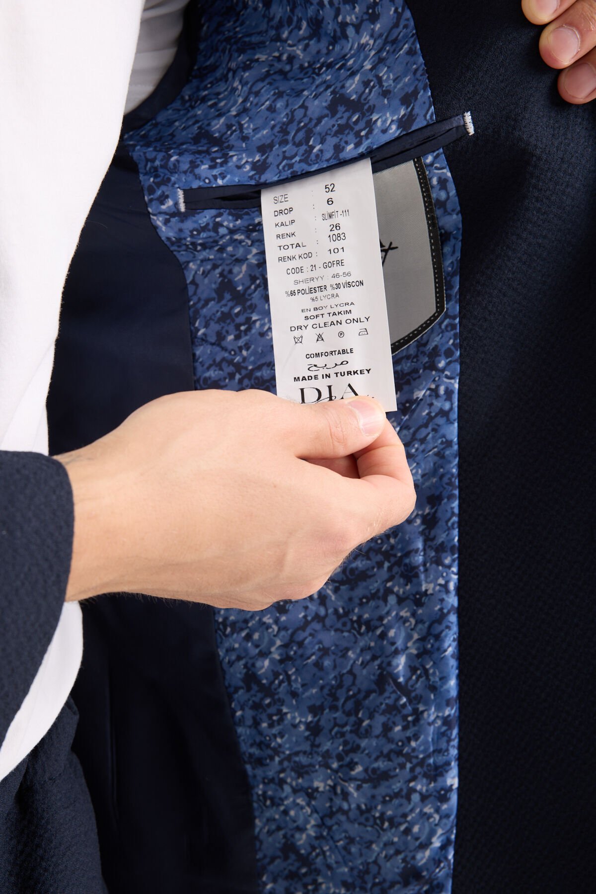 Gofre Takım Elbise - Lacivert, lacivert rengin kurumsal güvenini gofre dokunun karakterli yüzeyiyle birleştiren, net ve modern bir takım elbise yorumudur. Lacivert ton, günün her saatinde “doğru yerde” duran bir ciddiyet sunarken gofre doku, düz kumaşlı takımlara göre daha rafine ve premium bir algı oluşturur. Bu yapı, sade kombinlerde bile güçlü bir duruş üretir.