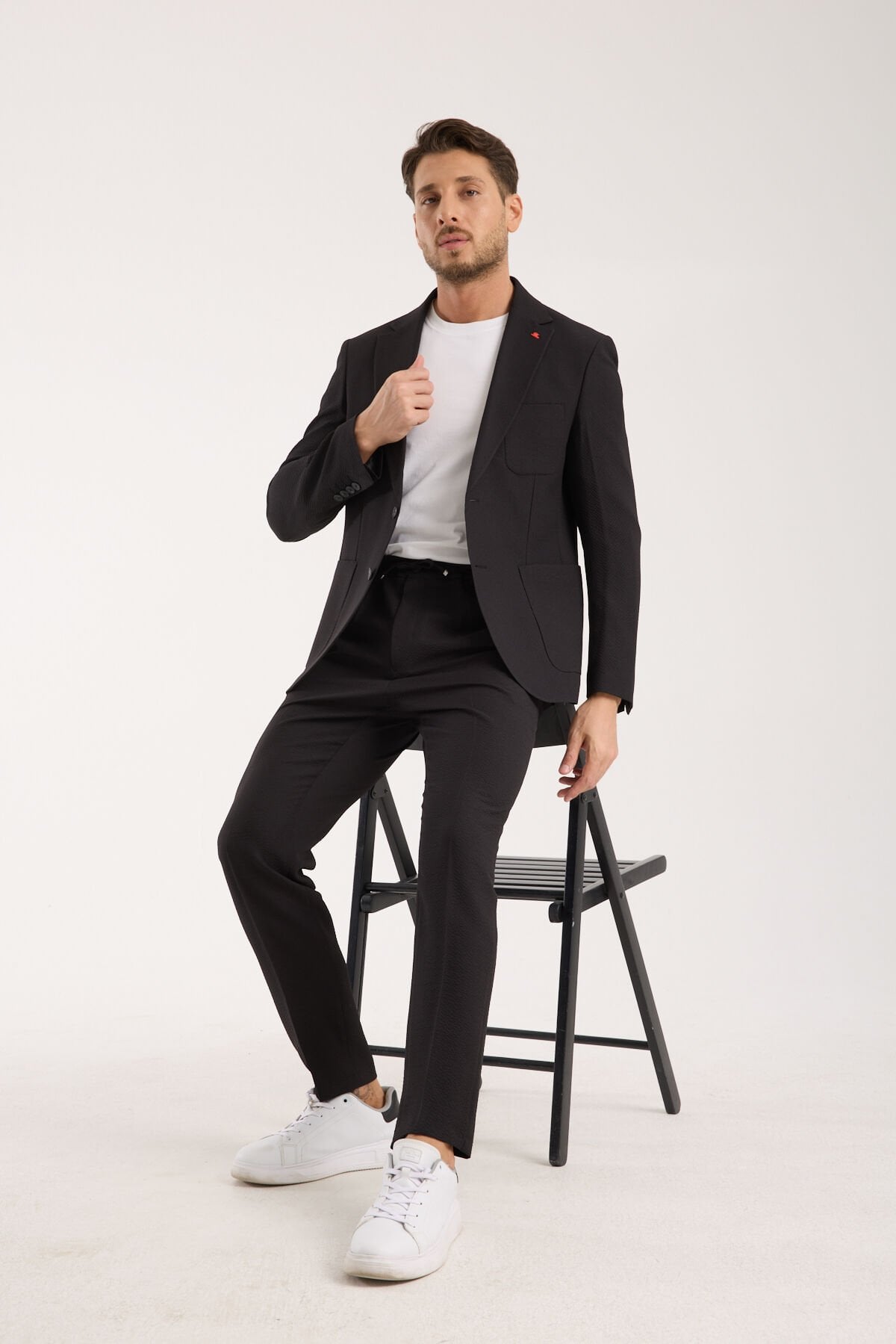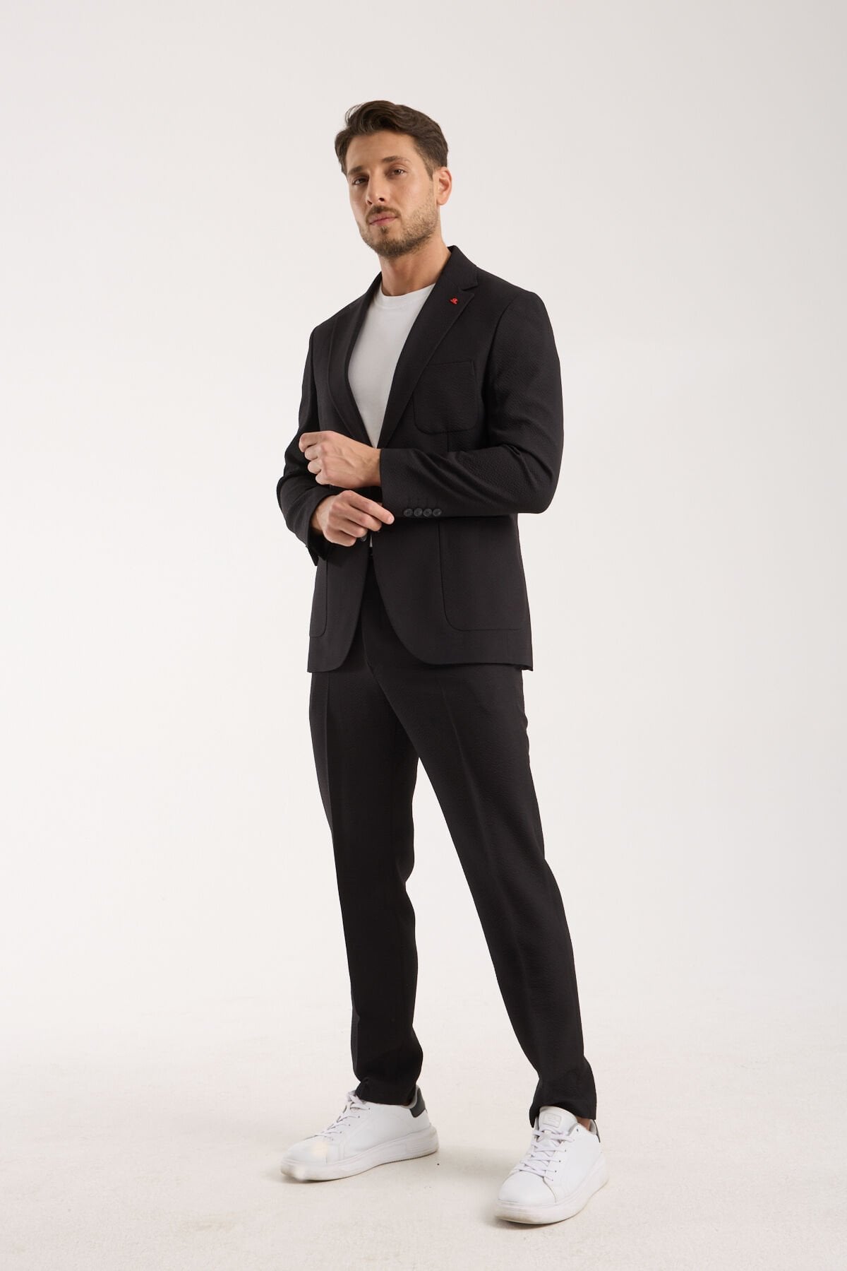 Gofre Takım Elbise - Siyah, üretim standardı bakımından güven veren bir yapıya sahiptir. Ürün menşei bilgisine göre Türkiye’de üretilmiştir.