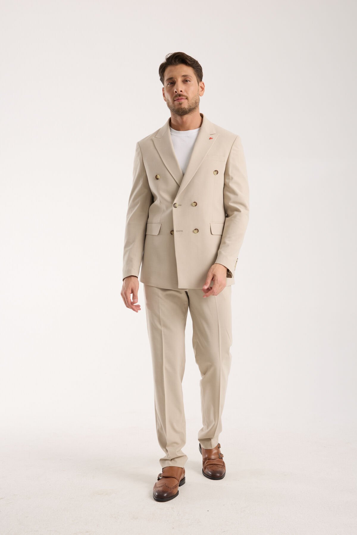 Bej, erkek giyimde açık tonlar arasında en dengeli ve en rafine seçeneklerden biridir. Bu nedenle Kruvaze - Bej, yalnızca açık renkli bir takım elbise değil; aynı zamanda güçlü ve sofistike bir stil parçasıdır. Bej ton, takımın genel görünümünü daha aydınlık hale getirirken kumaş yapısını sakin biçimde taşır ve kombine temiz bir bütünlük kazandırır. Bu sayede Kruvaze - Bej, sade kombinlerde bile daha özenli, daha premium ve daha karakterli bir görünüm sunar. Minimal aksesuarlarla kullanıldığında ürünün dengeli ve modern etkisi daha da belirgin hale gelir.