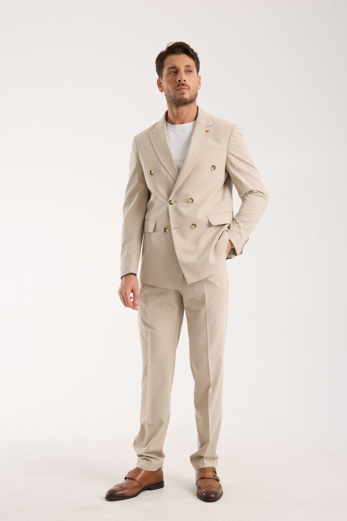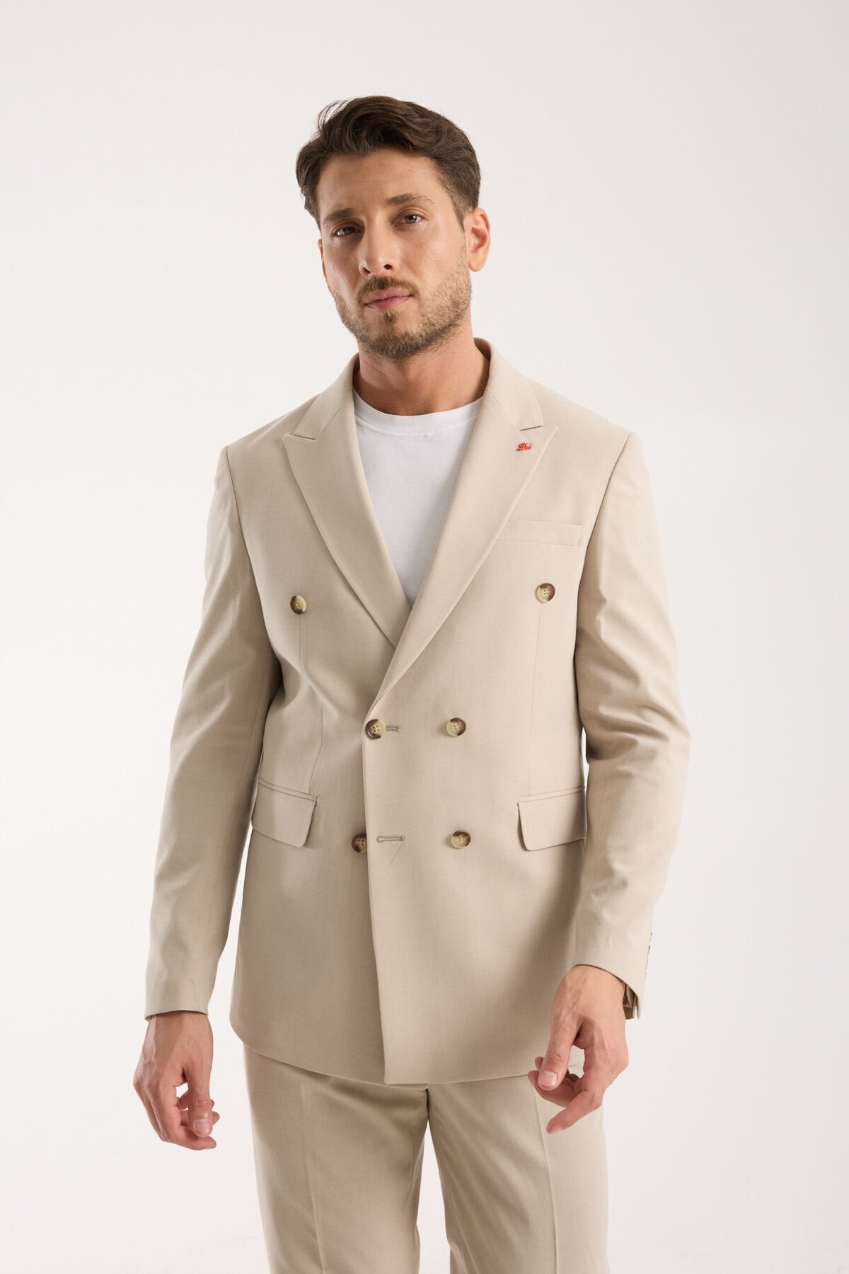 Kruvaze - Bej, kruvaze kesimin güçlü karakterini bej tonun sakin ve premium algısıyla birleştiren, modern şehir stiline tam oturan bir takım elbisedir. Bej renk, klasik koyu tonların sertliğini kırar; daha ferah, daha aydınlık ve daha sofistike bir görünüm verir. Bu nedenle Kruvaze - Bej, hem gündüz etkinliklerinde hem de şık davetlerde fazla ağır durmadan yine de net bir otoriteyle kendini gösterir. İlk bakışta temiz, dengeli ve karakterli bir görünüm sunan Kruvaze - Bej, yakından bakıldığında kumaş yapısıyla daha rafine bir stil etkisi oluşturur.