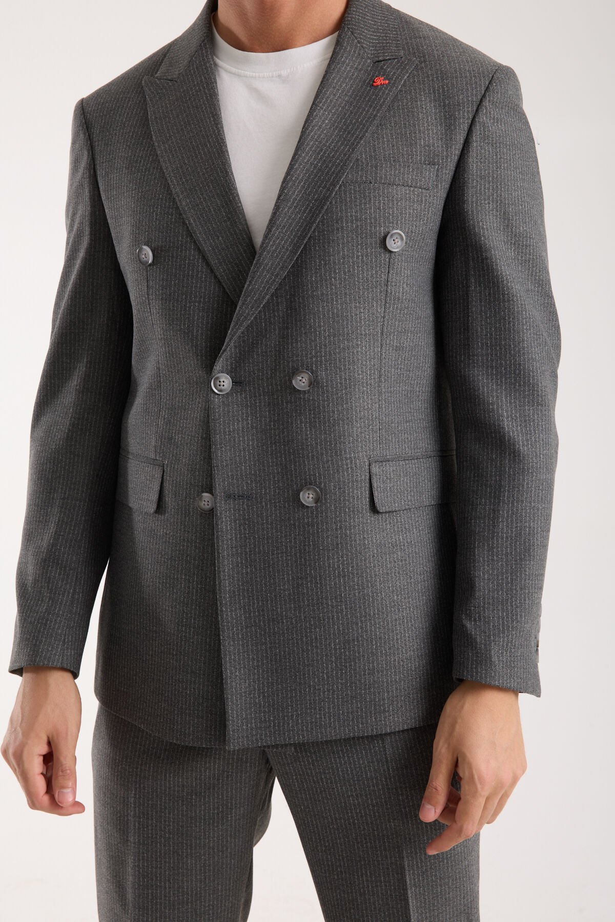 Çift düğmeli kruvaze kesim, göğüs ve bel hattında belirgin bir çerçeve oluşturarak duruşu otomatik olarak güçlendirir. Kruvaze formun en büyük avantajı, vücudu “daha toplu” göstermesidir; özellikle gövde çizgisini netleştirir ve takımın üzerinizde daha oturmuş görünmesini sağlar. Drop 6 kalıp yapısı, omuzdan bele uzanan hattı düzenleyerek daha kontrollü bir siluet sunar; gün boyunca formun korunmasına yardımcı olur ve hareketli kullanımda bile görüntünün dağılmasını geciktirir.