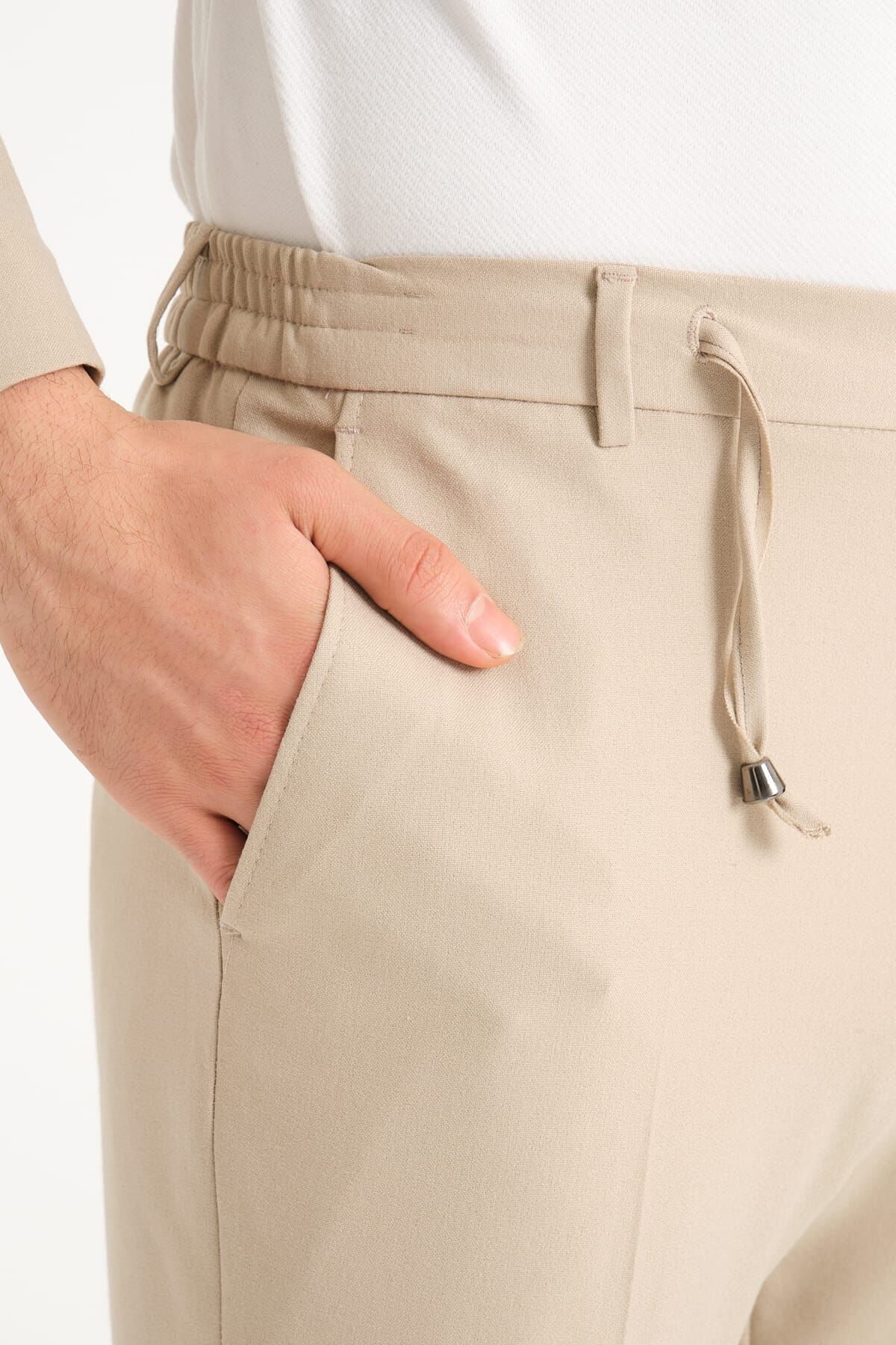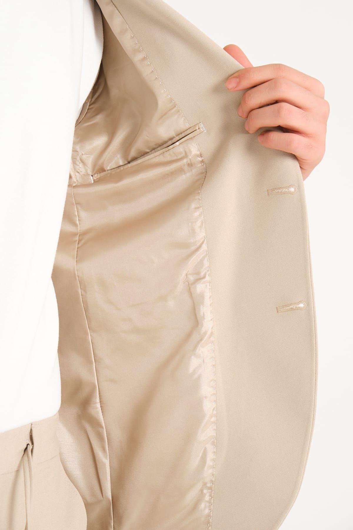 Modern kesimli bir takım elbisenin gün boyu formunu koruması en az görünümü kadar önemlidir. Slim Fit Takım Elbise - Krem, kontrollü kalıbına rağmen hareket alanını gereksiz şekilde daraltmayan dengeli bir yapıya sahiptir. Bu sayede uzun organizasyonlarda, davet akışında ya da gün boyu kullanım gerektiren planlarda daha rahat bir deneyim sunar. Düzenli görünümünü koruyan yapı, takımın ilk andaki derli toplu etkisini gün boyunca sürdürmesine yardımcı olur.