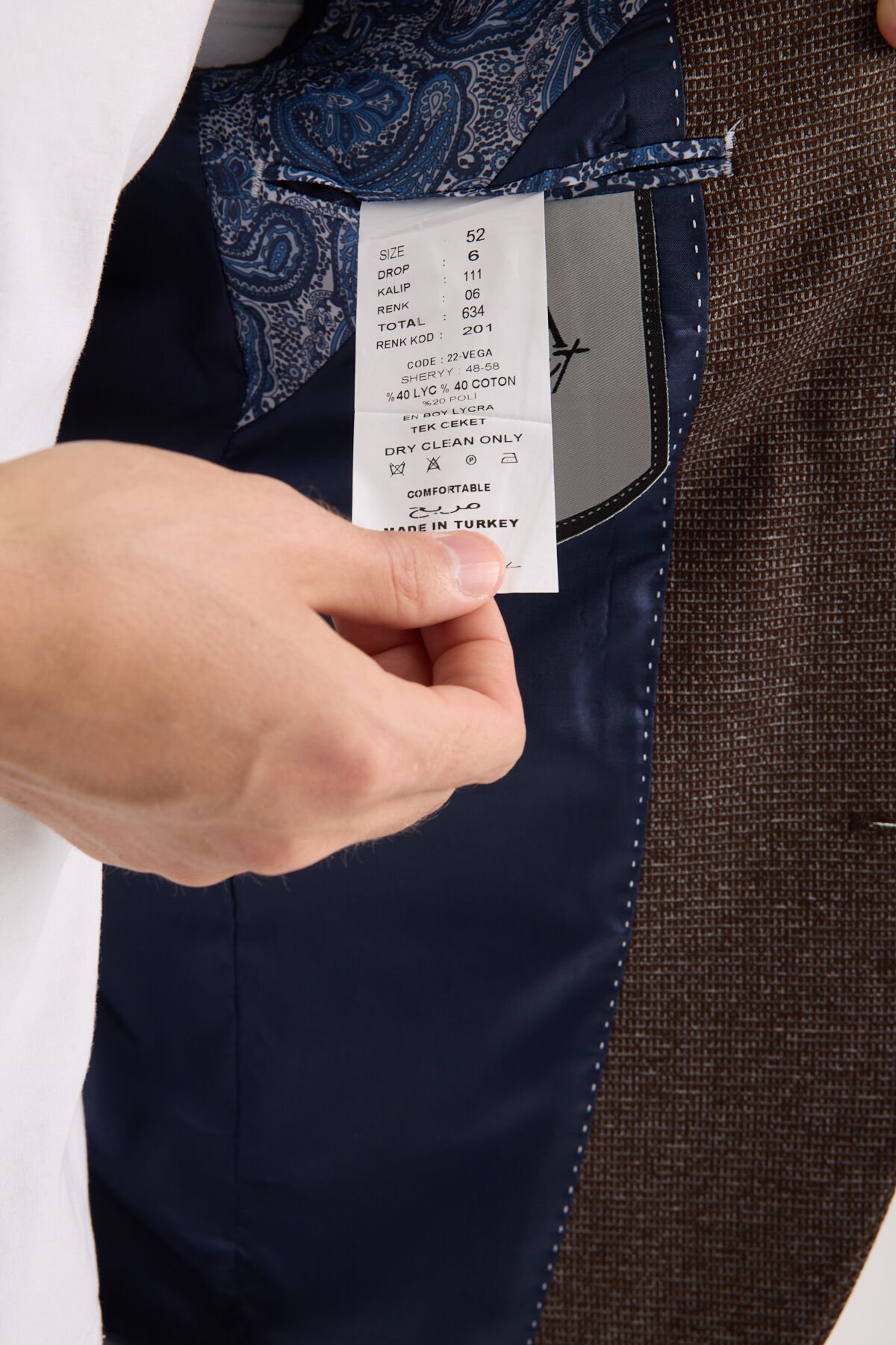 Etikette yer alan CODE: 22-VEGA ibaresi, modelin Vega serisine ait olduğunu belirtir. Kumaş etiketinde görülen içerik %40 LYC, %40 Coton ve %20 Poli olarak geçer. Ayrıca En Boy Lycra ifadesi, hareketli kullanımda konforu destekleyen esnek bir yapı sunar. Bu teknik denge sayesinde Vega Tek Ceket - Koyu Kahverengi, yalnızca iyi görünmekle kalmaz; gün boyunca daha rahat ve daha kontrollü bir kullanım deneyimi de sunar. Kumaş yapısının dengeli duruşu, Vega Tek Ceket - Koyu Kahverengi modelinin gün içine yayılan tempoda formunu korumasına katkı sağlar.