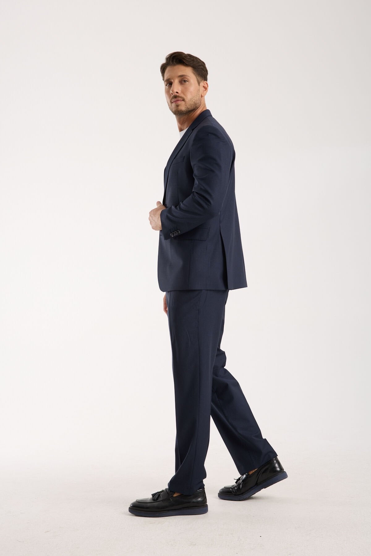 Kurumsal görünümde fark yaratmak isteyen ancak bunu abartılı bir çizgiye taşımadan yapmak isteyen kullanıcılar için Yünlü Takım Elbise - Çizgili Lacivert, güçlü bir denge sunar. Çizgili yüzey sayesinde daha karakterli bir görünüm elde edilirken lacivert tonun sağladığı güvenli zemin korunur. Böylece Yünlü Takım Elbise - Çizgili Lacivert, hem toplantılarda hem sunumlarda hem de resmi davetlerde rahatlıkla değerlendirilebilecek çok yönlü bir kullanım alanı oluşturur.