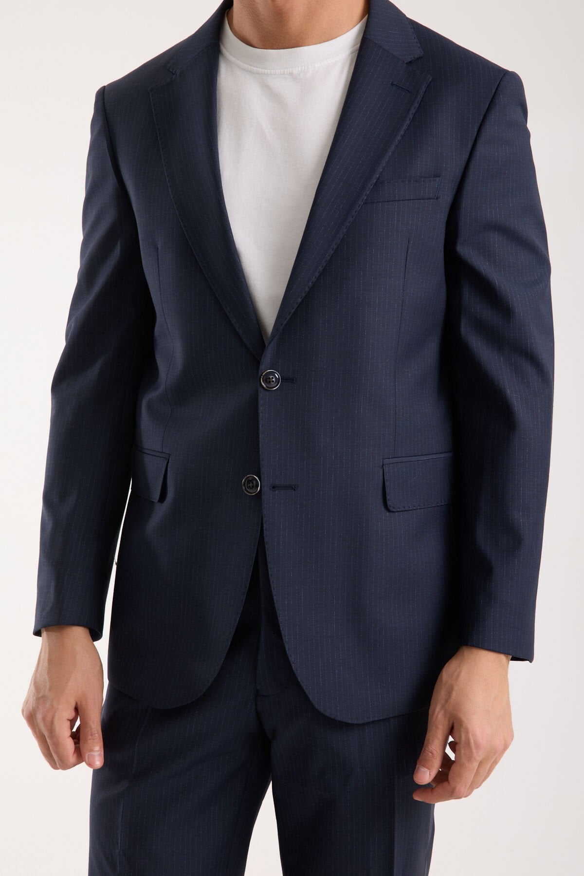 Yünlü Takım Elbise - Çizgili Lacivert
